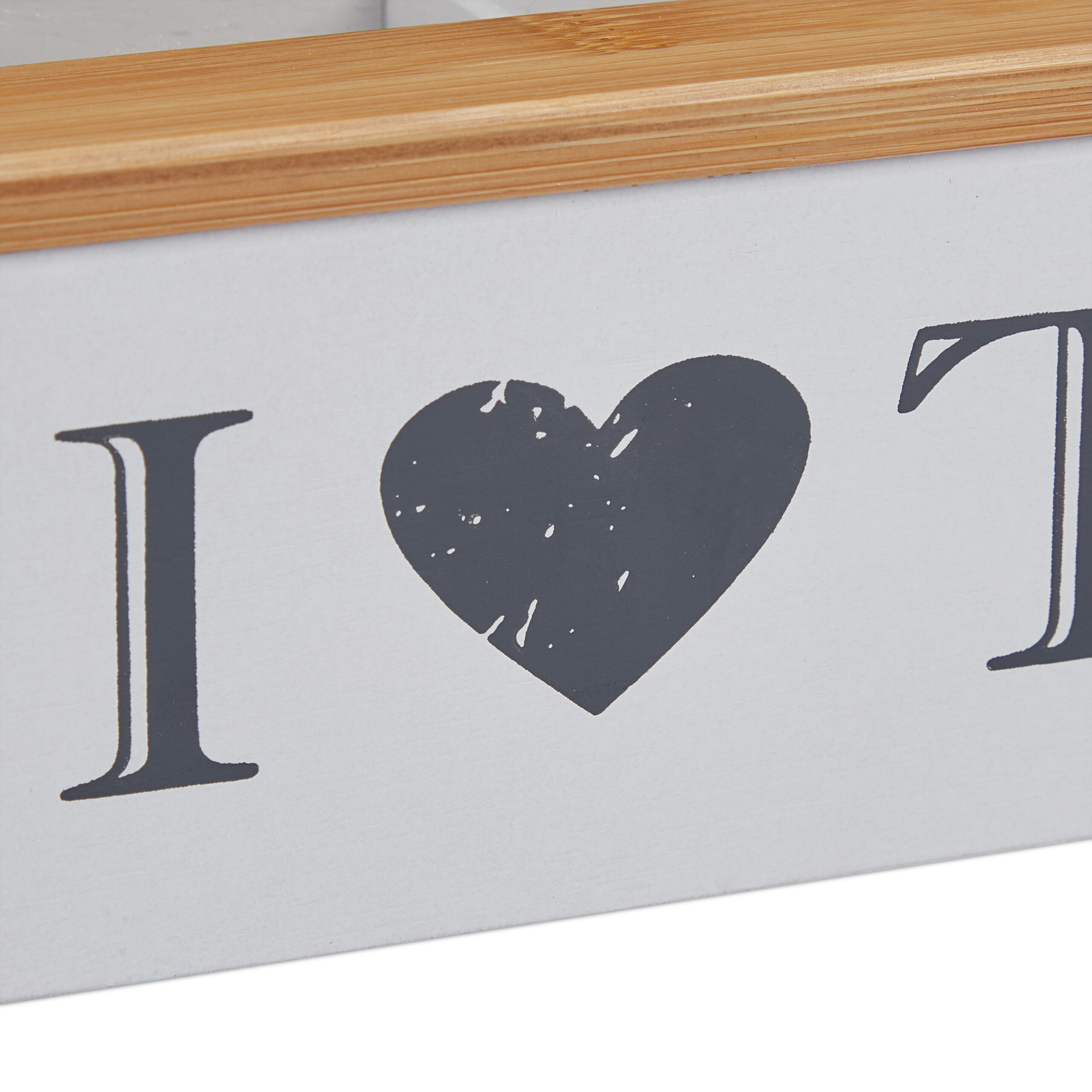 - Unikalus Dizainas: Dekoratyvinis „I Love Tea” spaudinys suteikia organizatoriui išskirtinumo ir žaismingumo.
