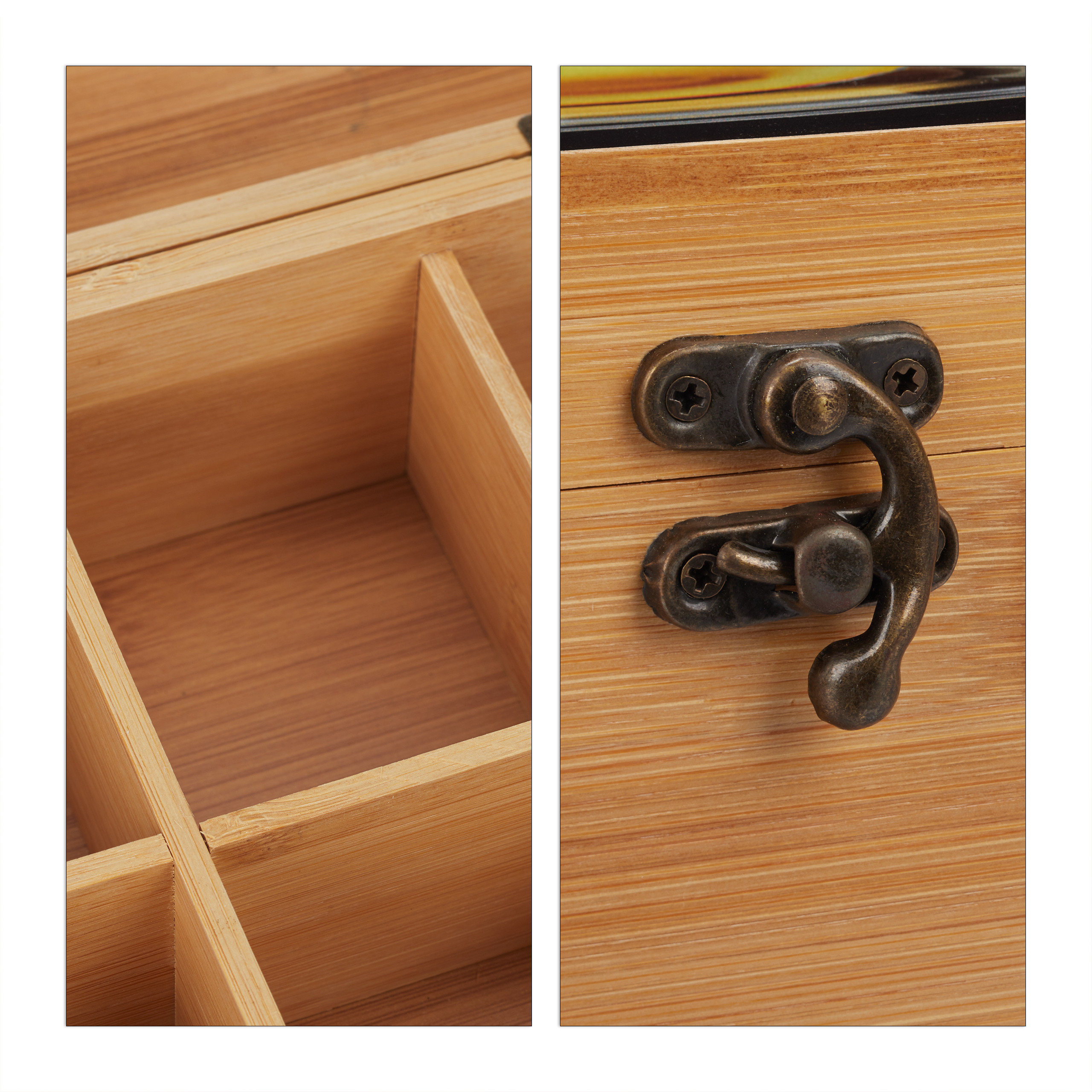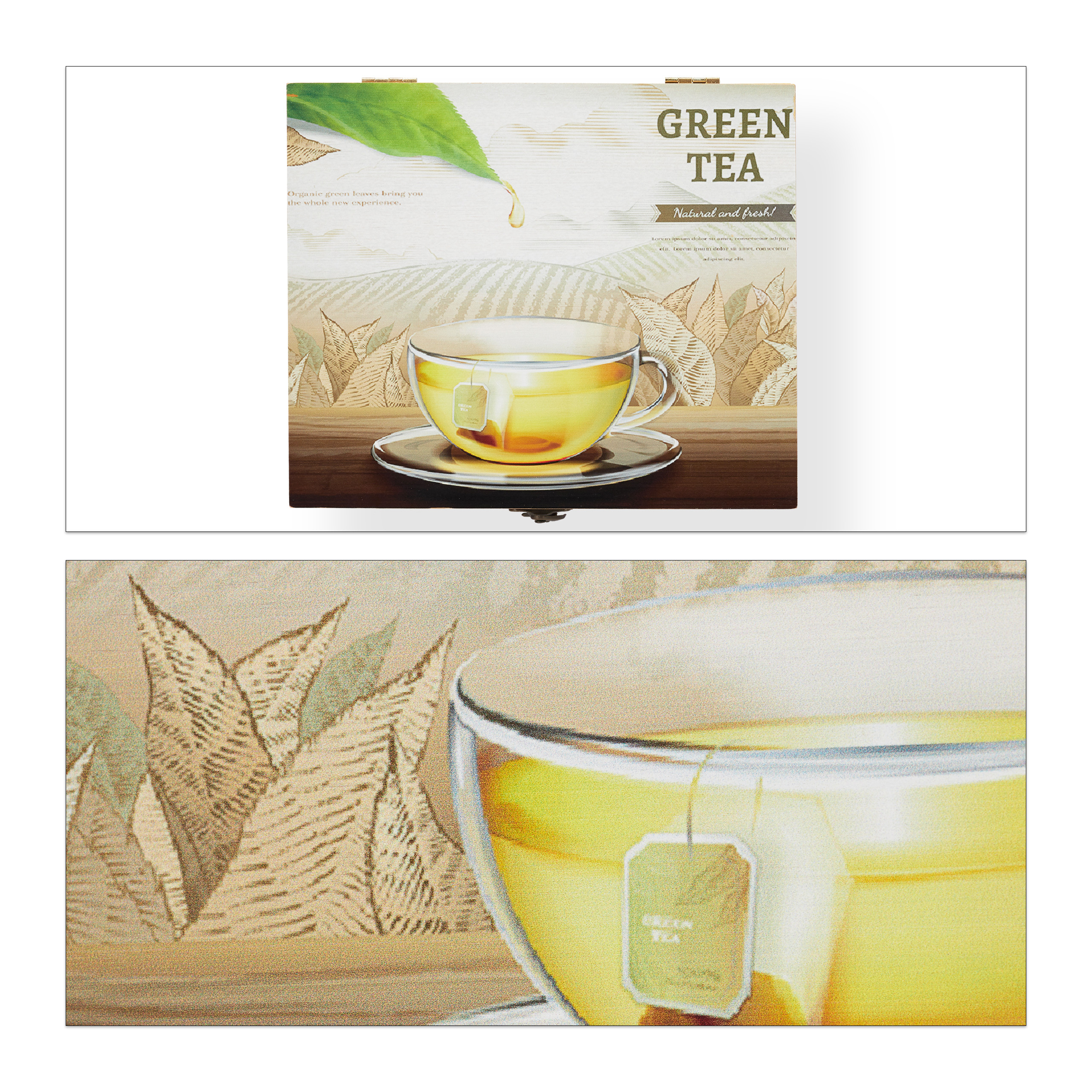 - Estetika: Atverčiamas dangtelis su arbatos motyvu suteikia šiam organizatoriui unikalumo ir žavesio.