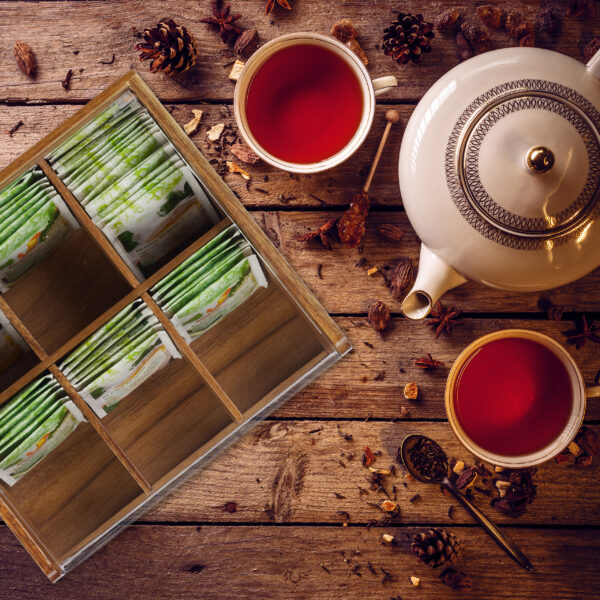 - Aromato Išsaugojimas: Dėžutė užtikrina, kad jūsų arbatos maišeliai būtų apsaugoti nuo išorinių kvapų, todėl arbatos skonis visada išliks šviežias ir autentiškas.