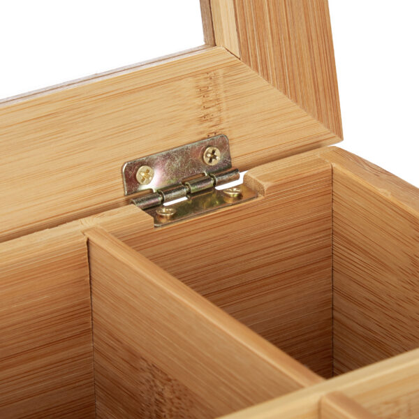 - Apžvalgos langelis: Dangtelyje esantis langelis leidžia lengvai peržiūrėti visus arbatos maišelius be būtinybės atidaryti dėžutę.