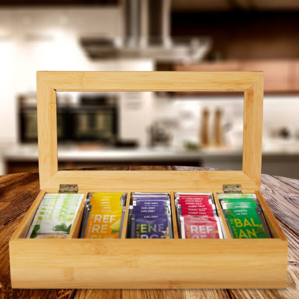 Ieškote elegantiško ir funkcionalaus sprendimo savo arbatos ir kavos kolekcijai laikyti? Mūsų arbatos maišelių organizatorius, pagamintas iš aukštos kokybės bambuko, yra puikus pasirinkimas. Šis organizatorius ne tik padės palaikyti tvarką, bet ir taps stilingu jūsų virtuvės akcentu.