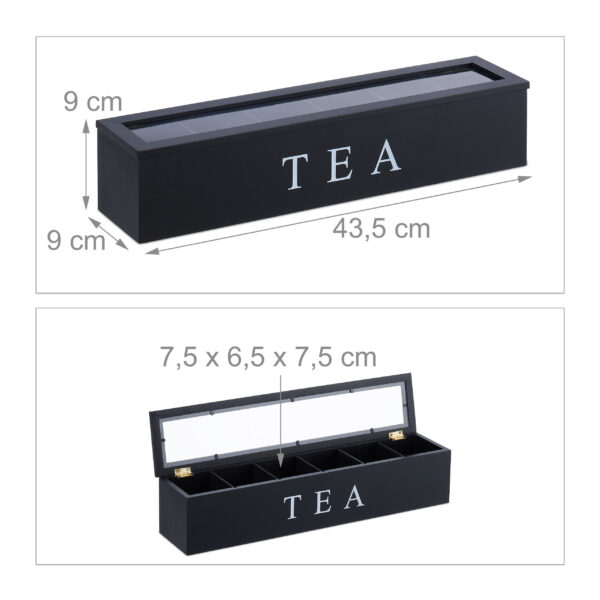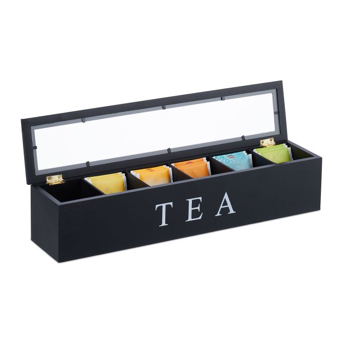 - 6 Skyriai: Leidžia patogiai laikyti skirtingų rūšių arbatą, kad visada turėtumėte savo mėgstamą gėrimą po ranka.