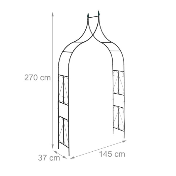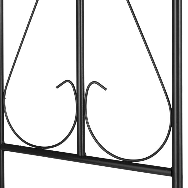 Ši didelė metalinė augalų arka yra puikus pasirinkimas tiems, kurie nori suteikti savo sodui elegancijos ir funkcionalumo. Pagaminta iš tvirto juodo metalo, ši arka ne tik suteikia vijokliniams augalams reikalingą atramą augant ir laipiojant, bet ir prisideda prie dekoratyvinio sodo dizaino.