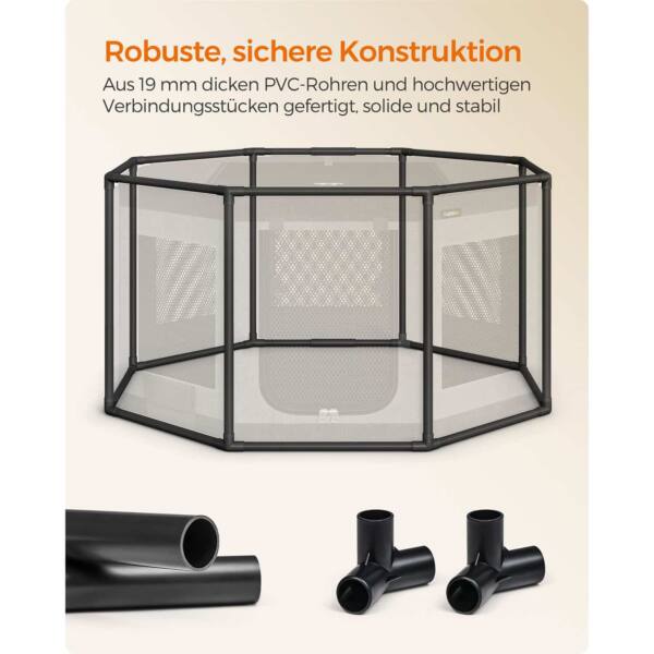Pagamintas iš aukštos kokybės PVC vamzdžių ir Oksfordo audinio, šis maniežas yra tvirtas ir ilgaamžis. Tamsiai pilka-šviesiai pilka spalva suteikia elegantišką išvaizdą, kuri puikiai derės prie bet kokio interjero.