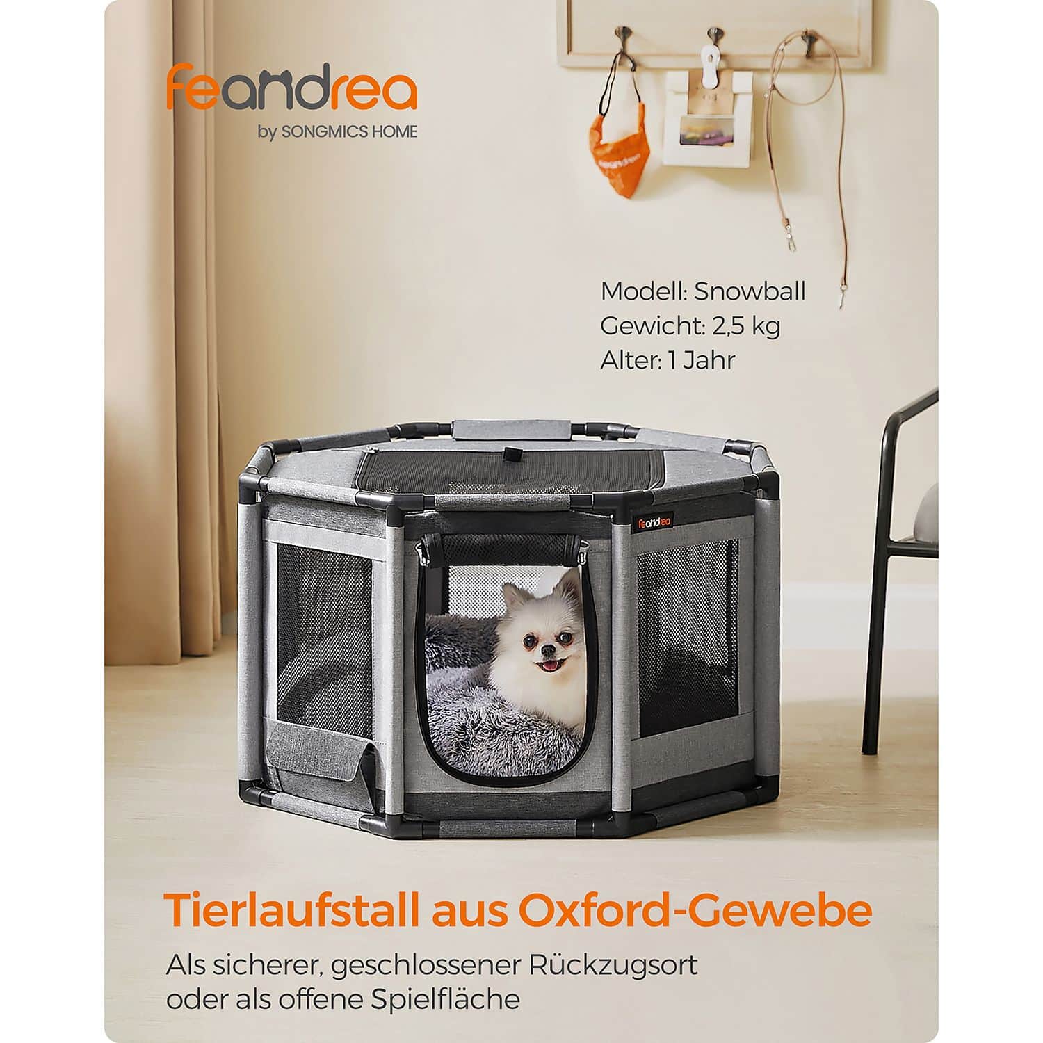 Pagamintas iš aukštos kokybės PVC vamzdžių ir Oksfordo audinio, šis maniežas yra tvirtas ir ilgaamžis. Jo tamsiai pilka-šviesiai pilka spalva puikiai dera prie bet kokio interjero.