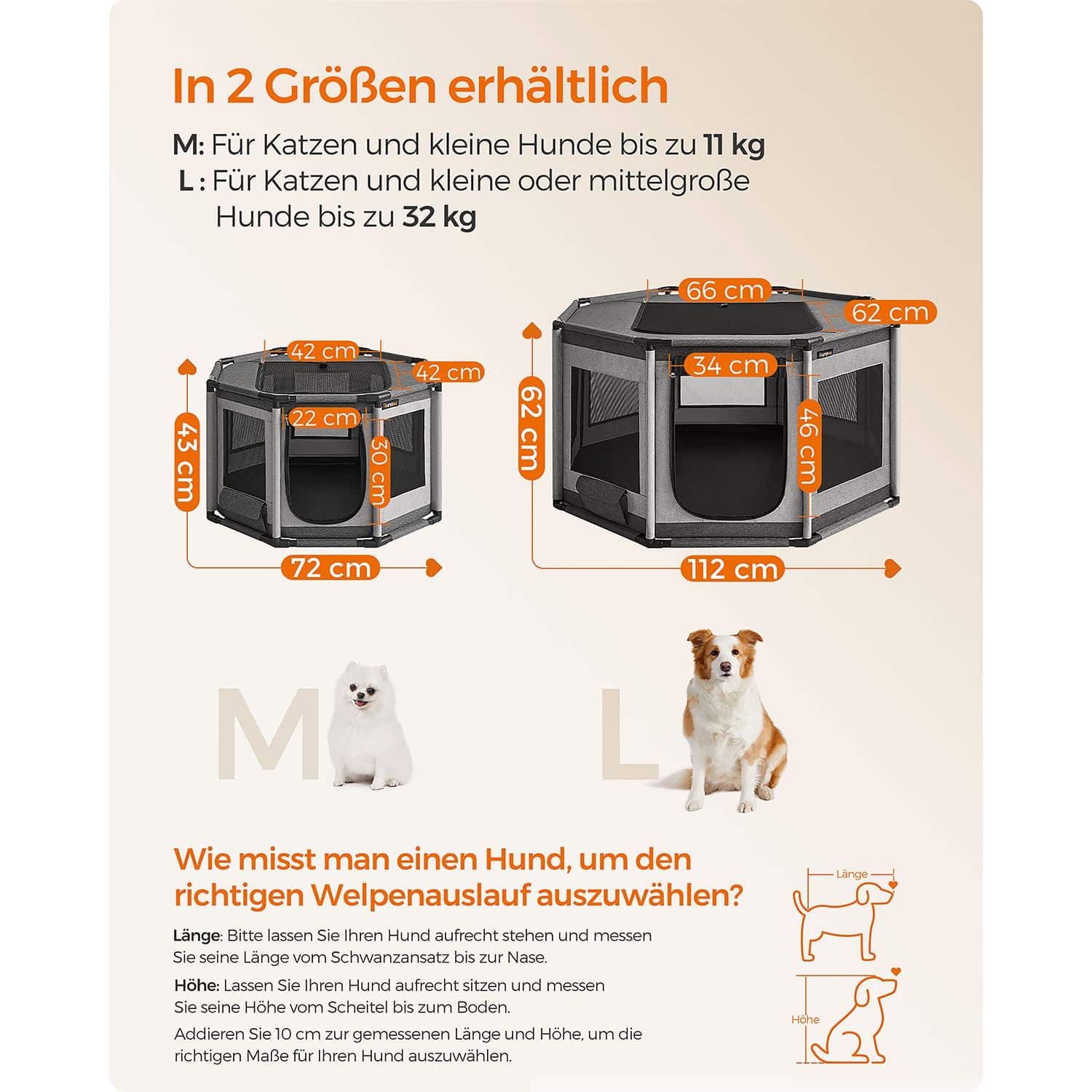 Maniežo dydis yra 72 x 72 x 43 cm , o jo svoris siekia tik 2,1 kg, todėl jį lengva perkelti ir transportuoti. Rekomenduojama šunims, sveriantiems iki 11 kg.