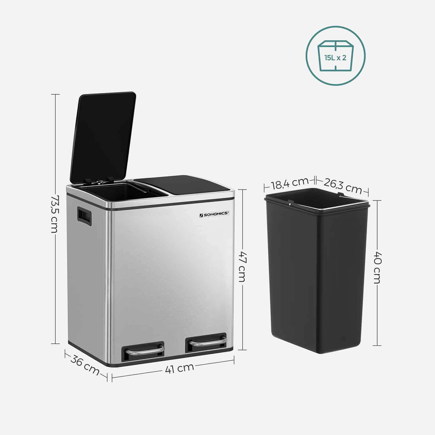 Atliekų rūšiavimo sistema 30 litrų (2 x 15 L)