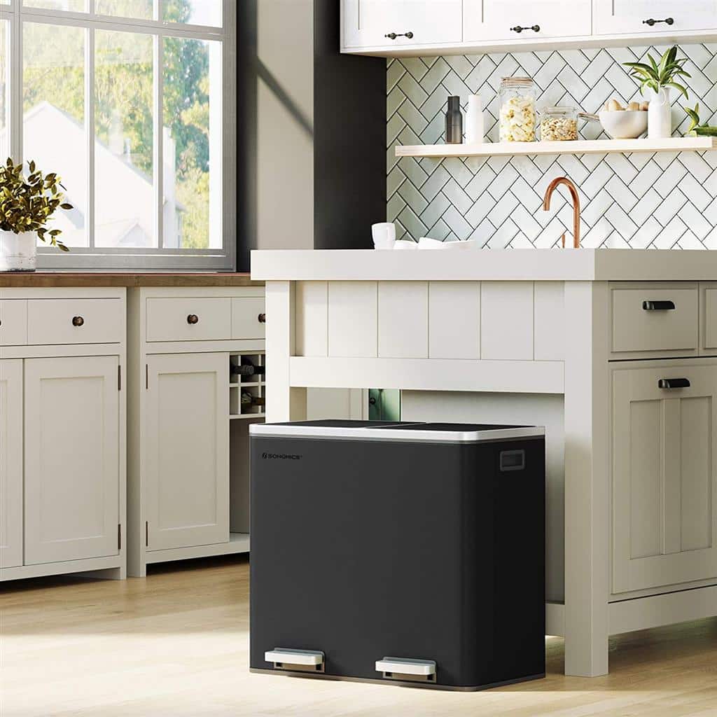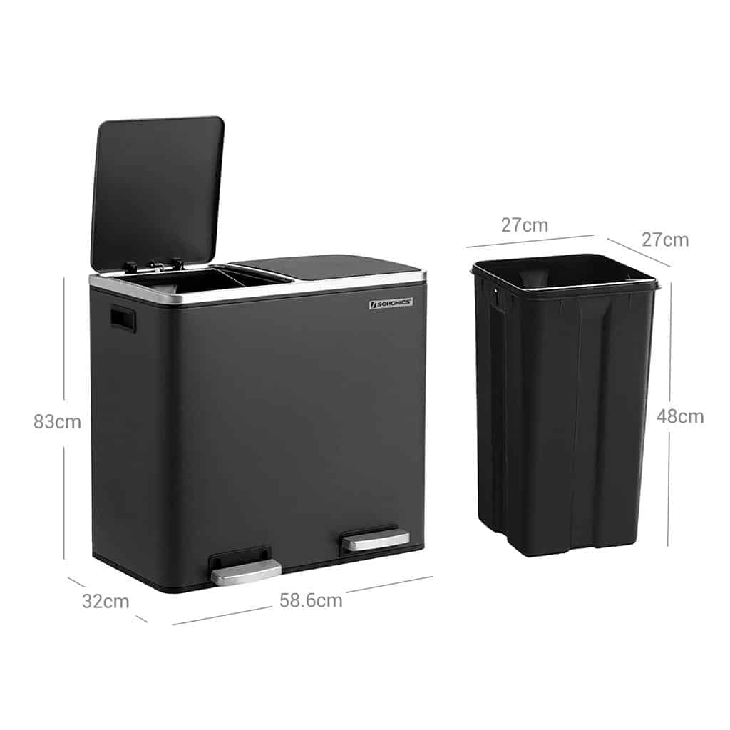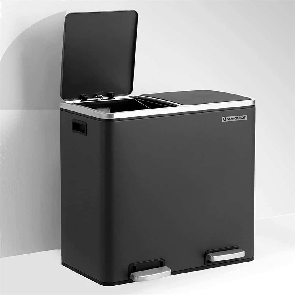 Perdirbimas taip pat gali būti paprastas: naudodami šią pedalinę šiukšliadėžę su 2 atskirais skyriais, galėsite lengvai rūšiuoti atliekas, pvz., likučius ir organines atliekas. Tereikia paspausti pedalą ir išmesti atliekas į vidinę šiukšliadėžę. Jums net nereikia liesti šiukšliadėžės ranka, o tai užtikrina higieną.