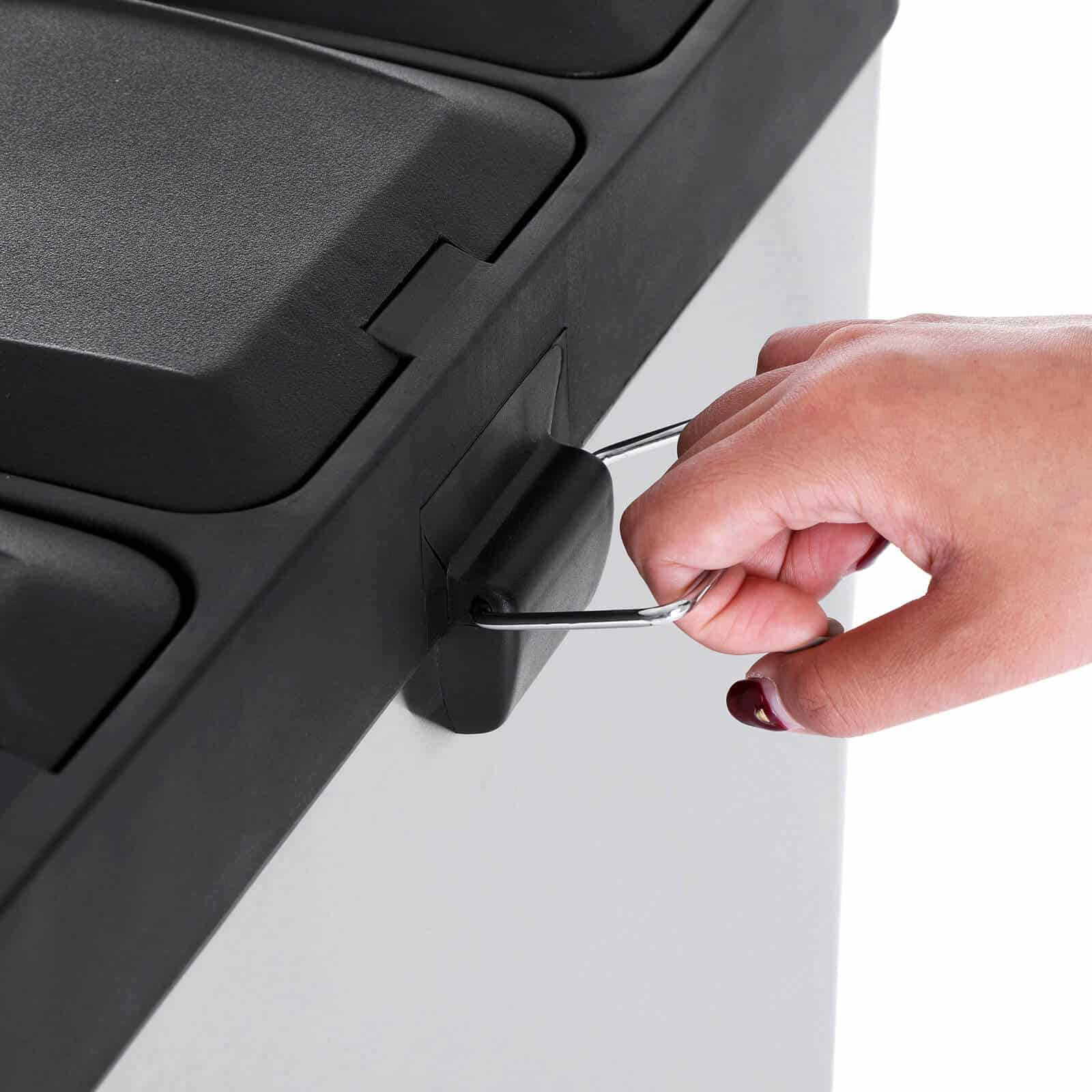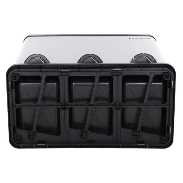 Trys nuimami vidiniai kibirai su rankenomis užtikrina greitą ir lengvą ištuštinimą. Pažangi didelės talpos atskyrimo sistema (kiekvienas kibiras po 18 litrų) yra kompaktiškų matmenų, todėl puikiai tinka bet kokiai erdvei. Pedalo funkcija leidžia higieniškai naudoti šiukšliadėžę.