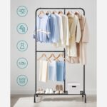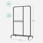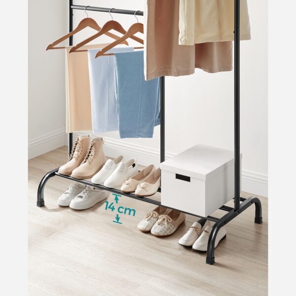 Ši atvira drabužių kabykla, juodos spalvos, yra puikus sprendimas jūsų drabužių laikymui ir organizavimui. Pagaminta iš aukštos kokybės plieno, ji yra tvirta ir ilgaamžė.