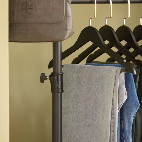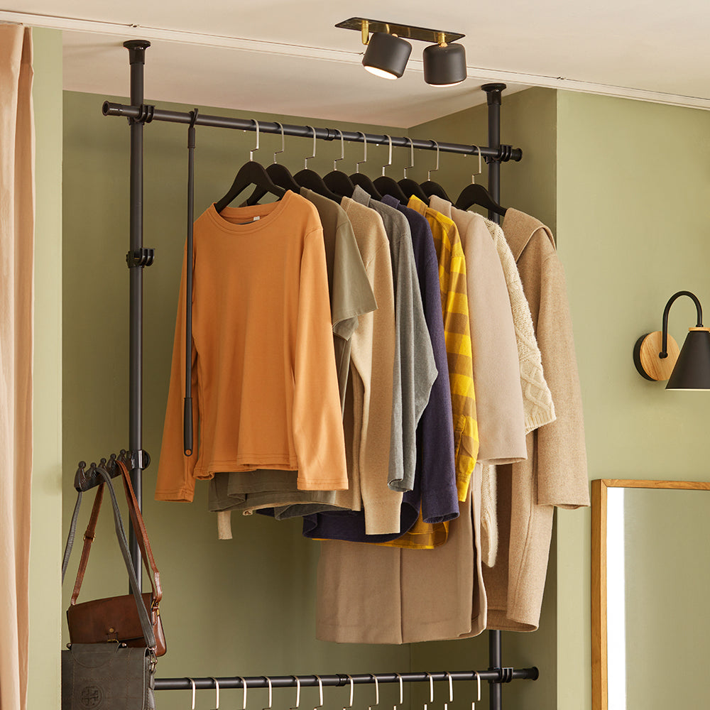 Atvira drabužių spinta 122×270 cm, juodos spalvos, yra puikus sprendimas jūsų drabužių ir aksesuarų laikymui. Ši teleskopinė drabužių kabykla leidžia reguliuoti ilgį ir aukštį pagal jūsų poreikius, todėl ji puikiai tinka bet kokiam interjerui.