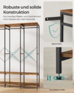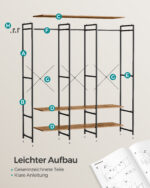 Ši elegantiška ir funkcionali atvira drabužių spinta yra puikus pasirinkimas tiems, kurie vertina stilių ir praktiškumą. Jos vintažinė ruda spalva suteikia interjerui šilumos ir jaukumo, o juodos detalės prideda modernumo ir išskirtinumo. Ši spinta ne tik puikiai atrodys jūsų miegamajame ar drabužinėje, bet ir padės tvarkingai laikyti jūsų drabužius bei aksesuarus.