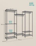 Atvira drabužių spinta 40x175x180cm, juodos spalvos