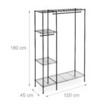 Pristatome elegantišką ir funkcionalią atvirą spintą, kuri puikiai tiks tiek miegamajame, tiek koridoriuje. Ši juodos spalvos spinta yra ne tik stilinga, bet ir praktiška, suteikianti papildomos sandėliavimo vietos jūsų drabužiams ir avalynei.