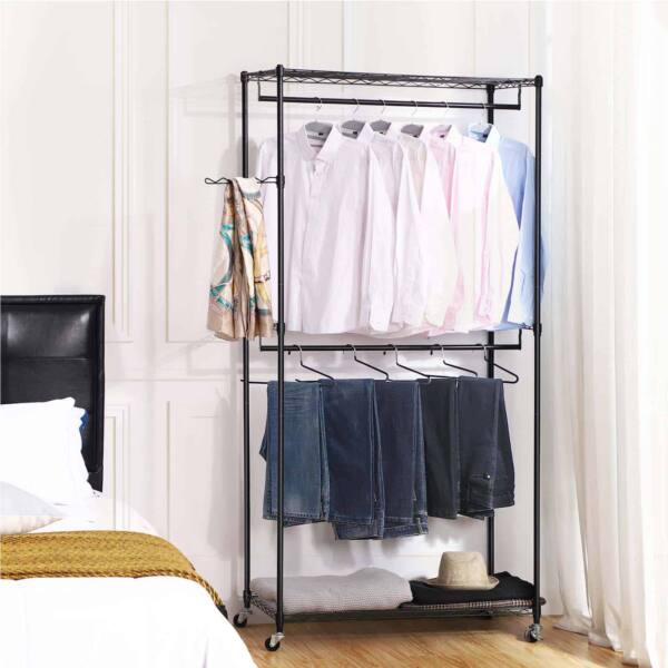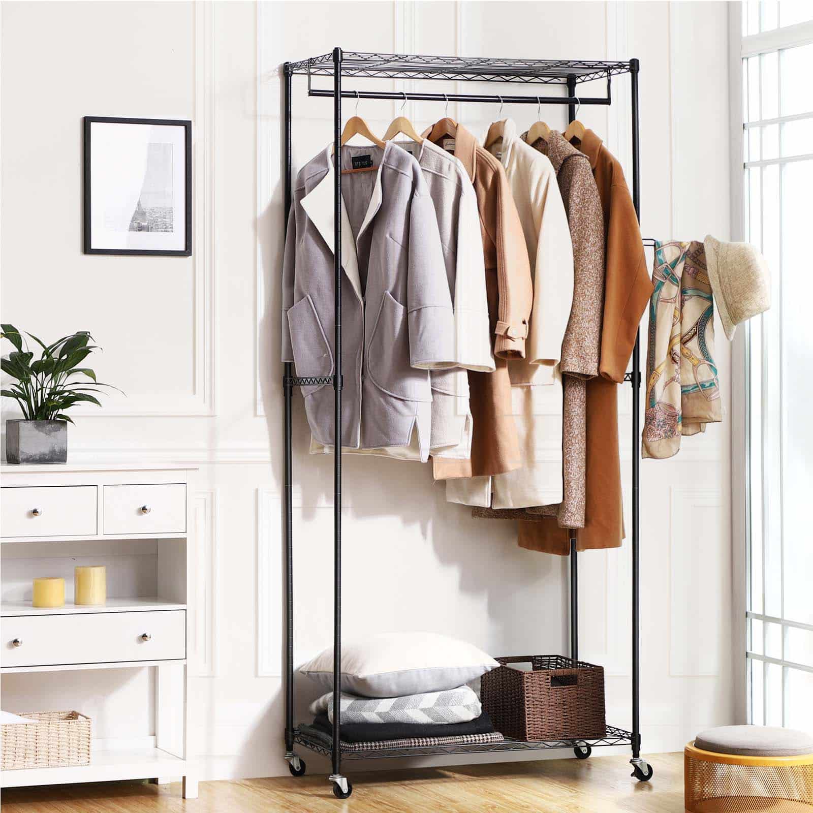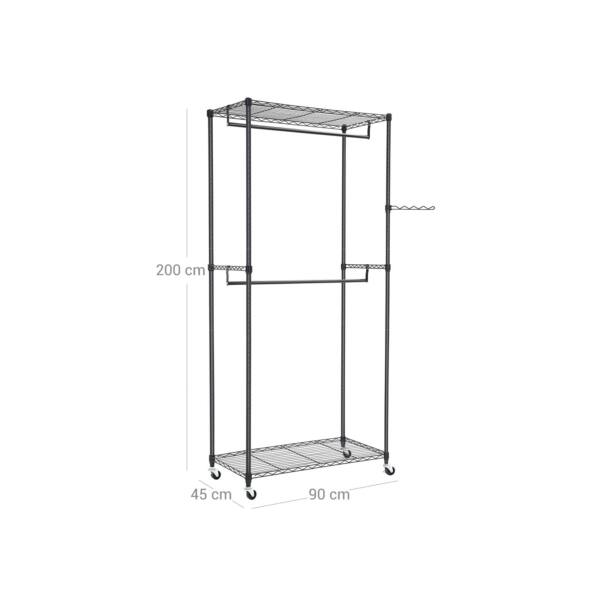 Jei jums reikia papildomos saugojimo vietos siauram prieškambariui, lyginimo kambariui, rūsiui ar svetainei kaip atsarginei drabužių kabyklai/spintai, Songmics drabužių kabykla puikiai tiks. Dėl aukštos kokybės ratukų su guoliais, stovą galite lengvai perkelti į bet kurią norimą vietą ant medinių grindų arba kilimo. Naudodami Songmics galėsite džiaugtis tvarkingais namais ir greita prieiga prie visų jums reikalingų drabužių.