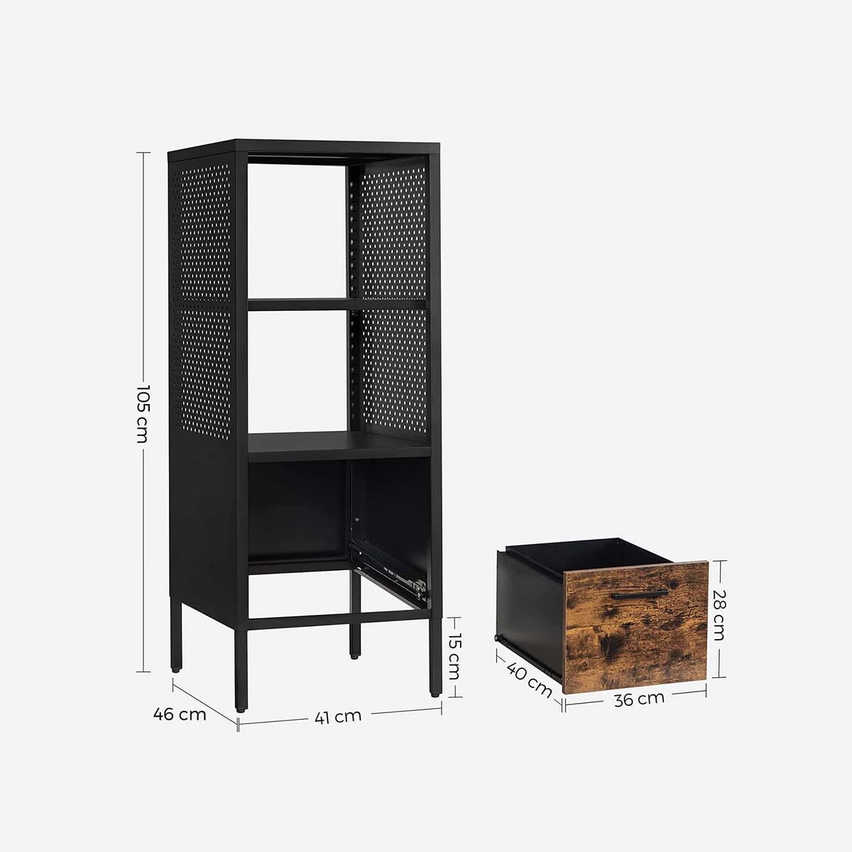 Aukšta spintelė su stalčiumi OMC301B01, rudos/juodos spalvos