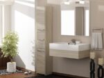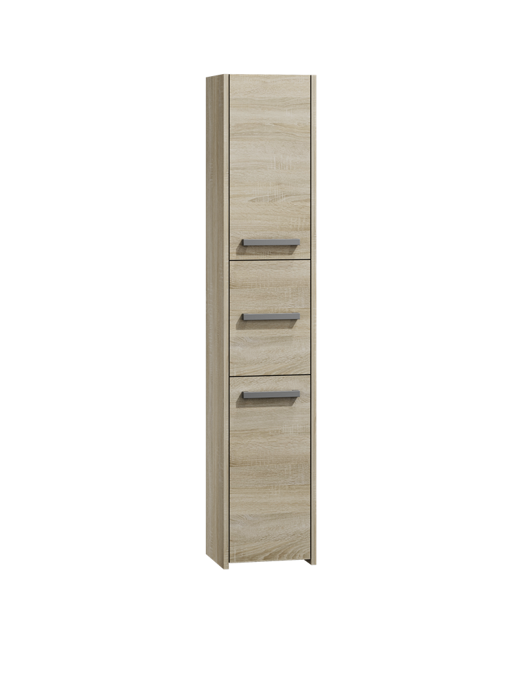 Trijų durelių, pastatoma vonios spintelė;