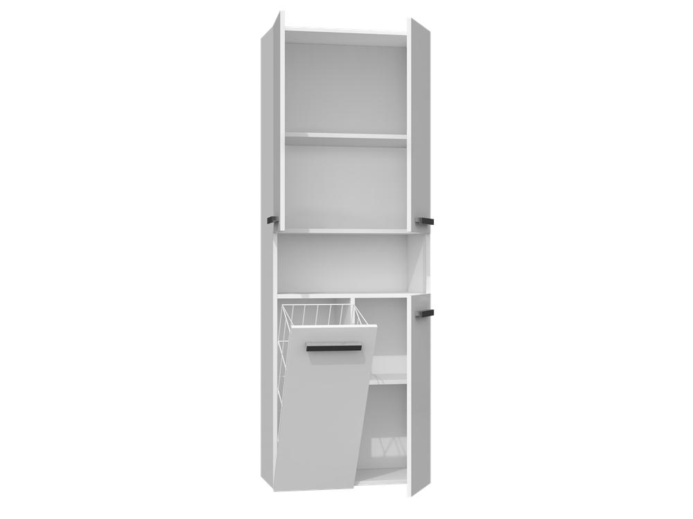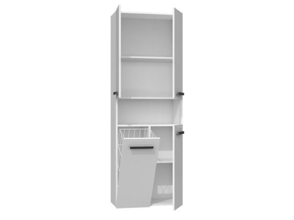 Aukšta vonios spintelė su skalbinių krepšiu DK 1K, blizgi balta