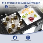 - Didelė 91 litrų talpa, idealiai tinkanti buteliams ir skardinėms vėsinti.