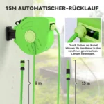 Automatinė žarnos ritė ir laistymo žarna Outsunny 45,5×15,5×35,5cm., žalios/juodos spalvos