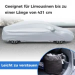 Automobilio uždangalas 455x165x115 cm, sidabrinės spalvos, skirtas apsaugoti jūsų automobilį nuo nepalankių oro sąlygų. Trijų sluoksnių konstrukcija su aliuminio folija užtikrina patvarumą ir atsparumą UV spinduliams, lietui bei sniegui. Dangtis tinkamas sedanams iki 455 cm ilgio.