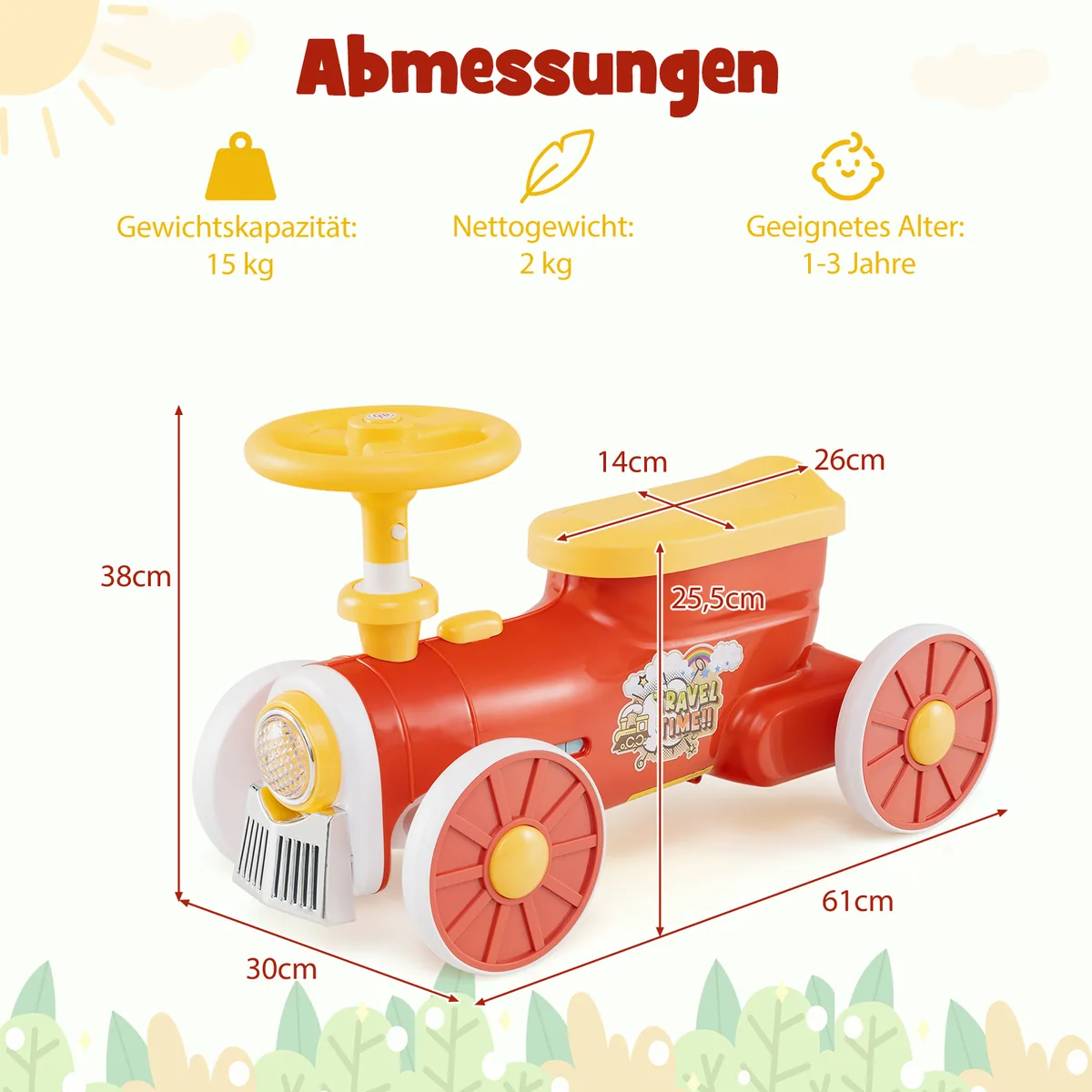 Automobilis stumdukas 61x30x38cm, įvairių spalvų, skirtas skatinti vaikų aktyvų žaidimą ir motorikos vystymą. Žaislas su traukinio tema turi realistiškus garso efektus bei saugų vairavimo mechanizmą, tinkamas naudoti ant įvairių paviršių. Automobilis puikiai tinka mažiesiems nuo 19 iki 36 mėnesių.