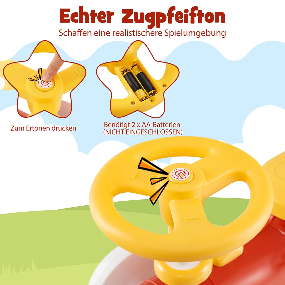 - Realistiškas traukinio švilpukas su garso mygtuku.