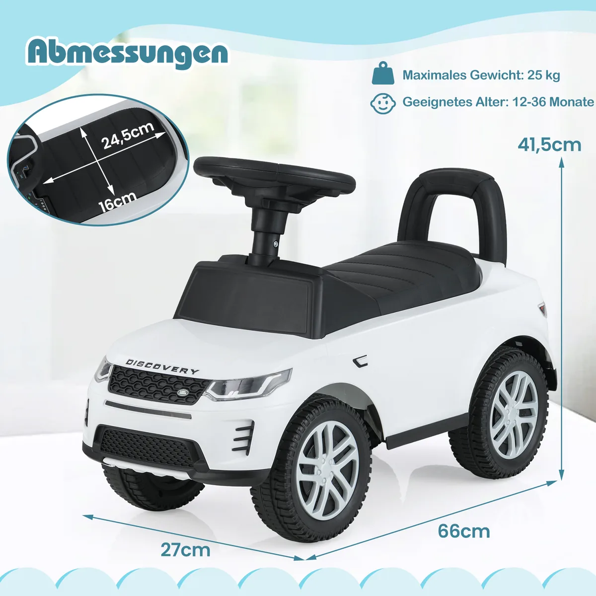 Automobilis stumdukas 66x27x41,5cm baltos ir juodos spalvos – tai vaikams skirtas važiuojamasis žaislas, kuris padeda lavinti pusiausvyrą ir skatina aktyvų laisvalaikį. Šis automobilis sukurtas saugiam ir patogiam vaikų naudojimui nuo 12 mėnesių amžiaus.