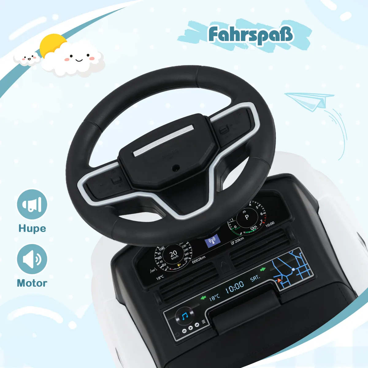 - Garso signalas ir variklio garsas prideda realistiškumo važinėjimuisi.