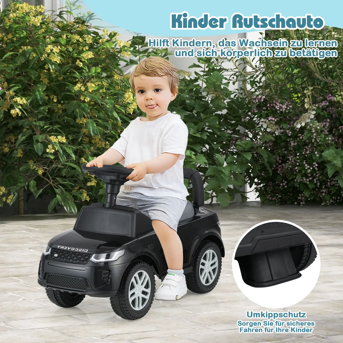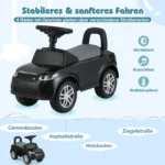 Automobilis stumdukas juodos spalvos, matmenų 66x27x41,5 cm, skirtas vaikams nuo 12 iki 36 mėnesių. Tai praktiškas ir saugus važiuojamasis žaislas, padedantis lavinti vaiko motoriką bei koordinaciją.