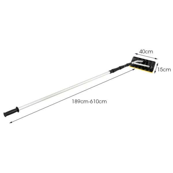 - Ilga teleskopinė rankena reguliuojama nuo 1,9 m iki 6,4 m, leidžianti lengvai valyti sniegą ir šiukšles net iš aukštų paviršių.