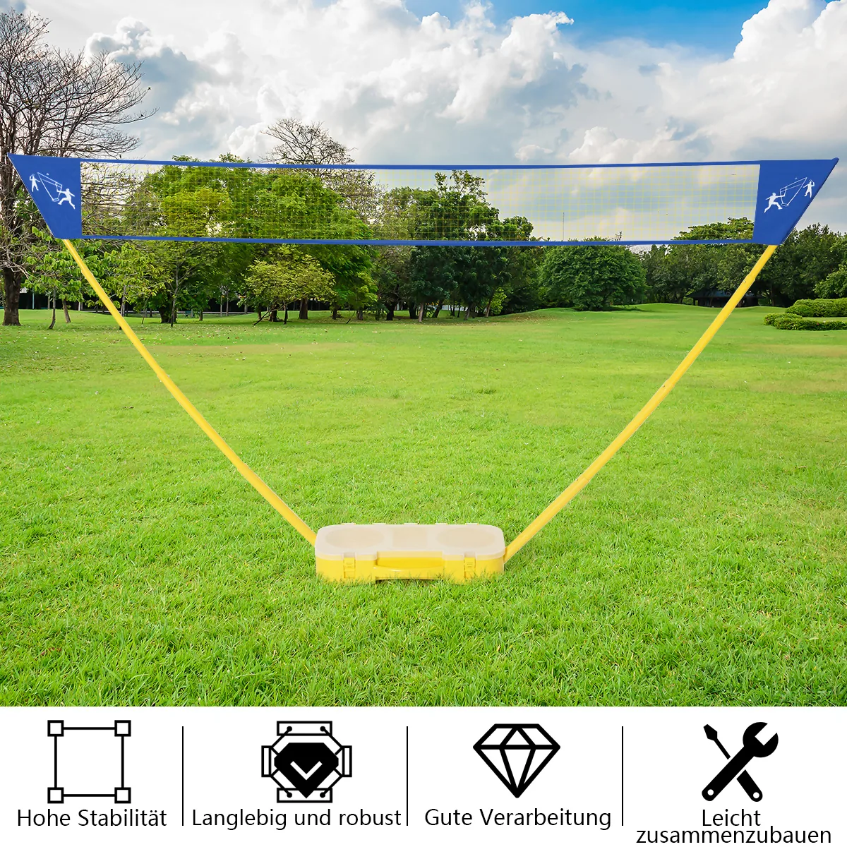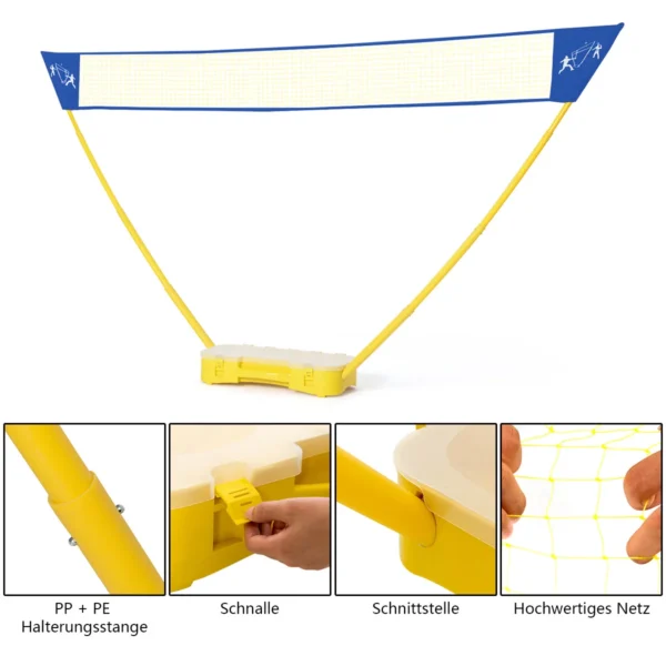 Badmintono tinklas 300x150cm geltonos ir mėlynos spalvos skirtas laisvalaikiui tiek lauke, tiek patalpose. Komplektą sudaro tinklas, raketės ir kamuoliukai, leidžiantys lengvai organizuoti badmintoną šeimai ar draugams. Tinklo matmenys ir patvarios medžiagos užtikrina ilgaamžiškumą ir daugiafunkciškumą.