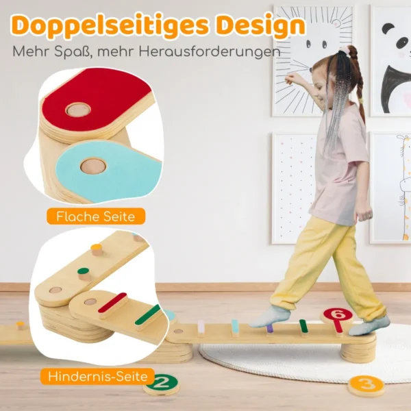 Balansavimo takas įvairių spalvų – lavinamasis medinis žaislas, skirtas vaikų pusiausvyros, koordinacijos ir motorikos įgūdžiams stiprinti. Universalios balansinės sijos leidžia kurti įvairias formas ir kliūčių ruožus, ugdant vaikų kūrybiškumą bei fizinį aktyvumą.