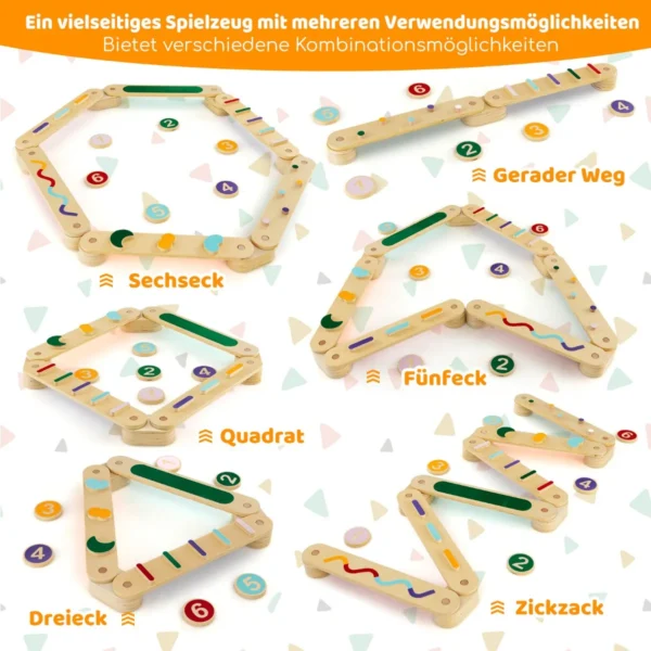 - Medinės balansinės sijos suteikia galimybę formuoti šešiakampius, penkiakampius, zigzagus, trikampius, tiesias linijas arba kvadratus.