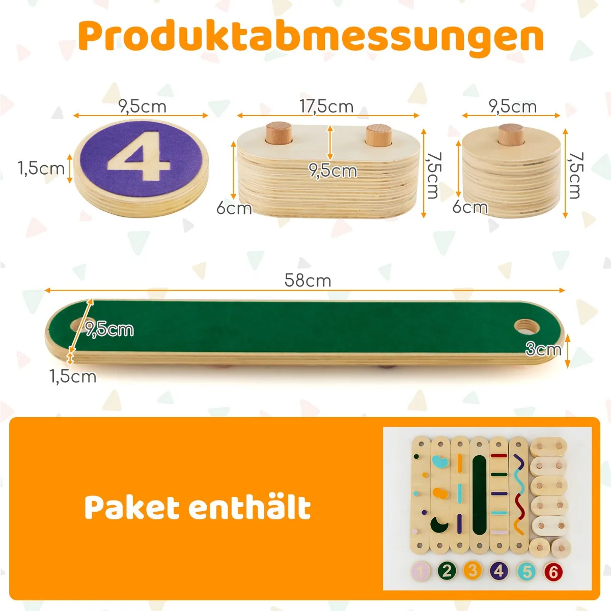 - Kiekvieno laiptelio matmenys: 9,5 x 9,5 x 1,5 cm (P x P x A)