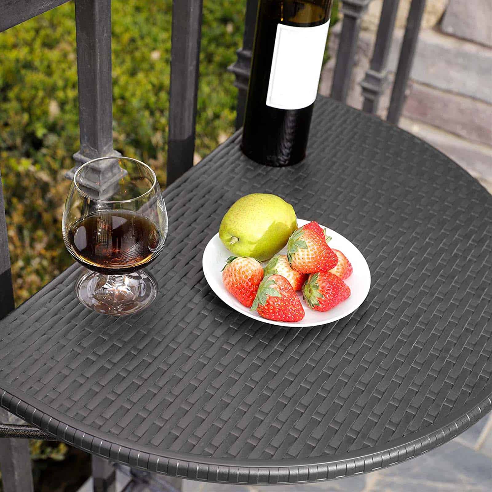 Palaima mažiems balkonams: šilta saulė, švelni siena – kas gali būti geriau nei sėdėti balkone tokiu oru su knyga, kavos puodeliu ir užkandžiais ranka pasiekiama? Net jei turite tik nedidelį balkoną, šis balkono pakabinamas staliukas iš politorango, juodos spalvos, siūlo jums didelį patogumą.