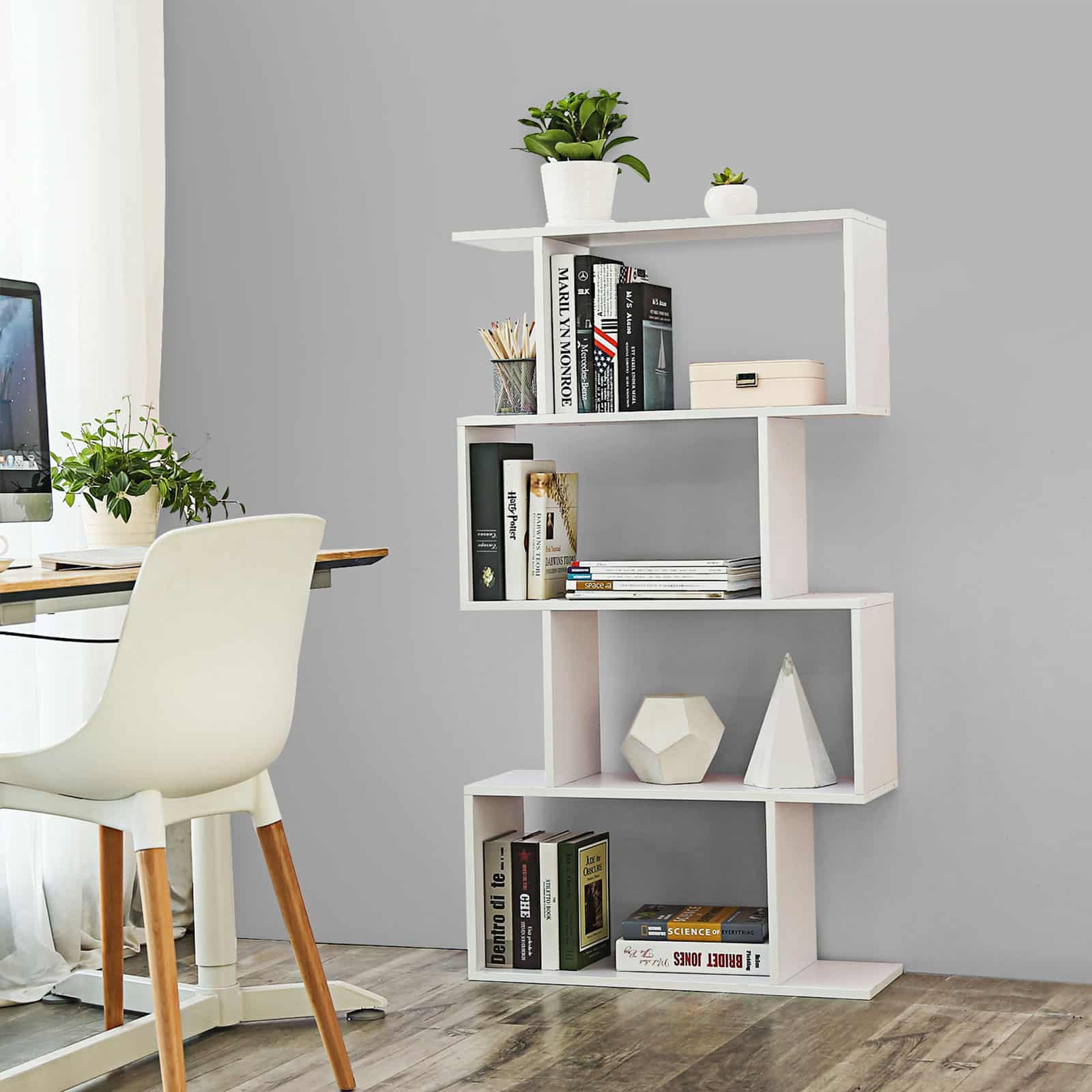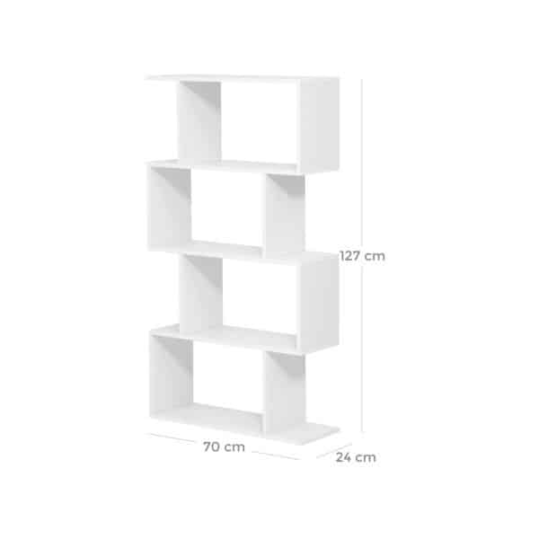 Ši balta knygų lentyna su 4 skyriais yra puikus pasirinkimas jūsų namų ar biuro interjerui. Pagaminta iš kokybiškos medžio drožlių plokštė (MDP) su melamino lukštu, ji ne tik atrodo elegantiškai, bet ir yra patvari bei lengvai prižiūrima.