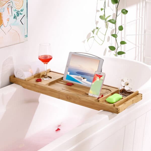 Bambukinė vonios lentyna / padėklas 109 cm yra puikus pasirinkimas jūsų vonios kambariui. Ši lentyna ne tik suteikia papildomos vietos jūsų vonios reikmenims, bet ir prideda natūralumo bei elegancijos jūsų interjerui.