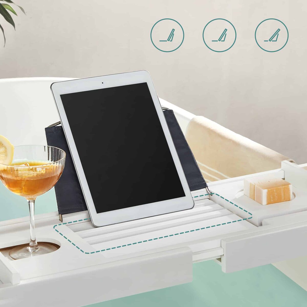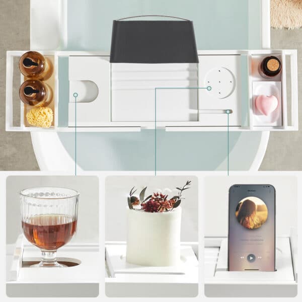 Bambukinis vonios padėklas, baltas, yra puikus pasirinkimas jūsų vonios kambariui. Šis padėklas ne tik suteiks elegancijos, bet ir bus praktiškas sprendimas jūsų kasdieniams poreikiams.