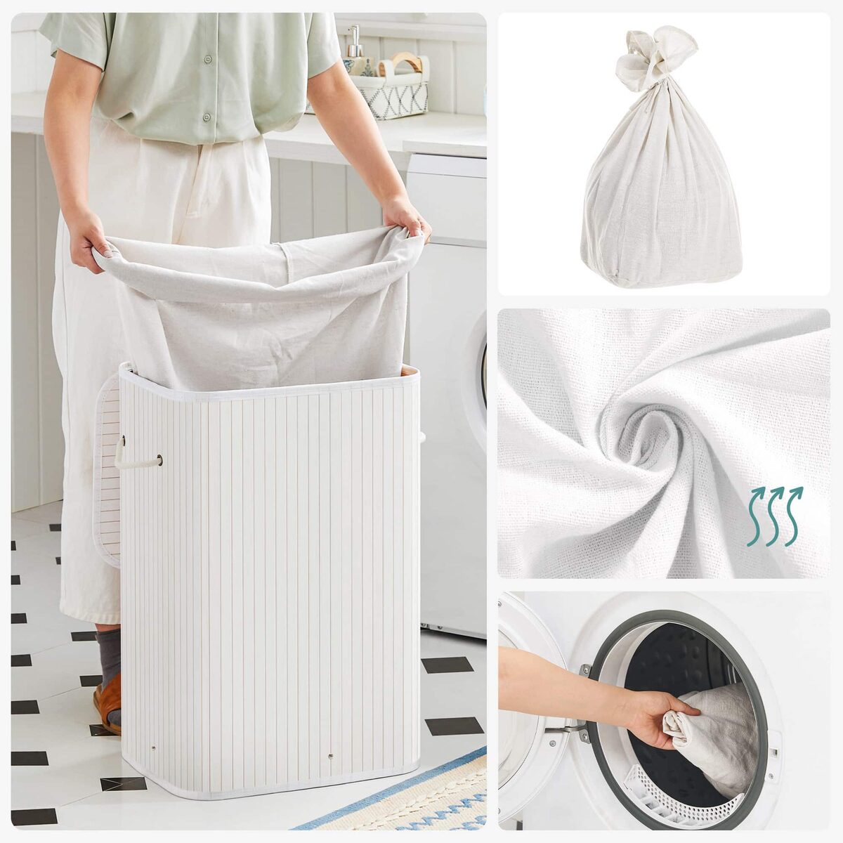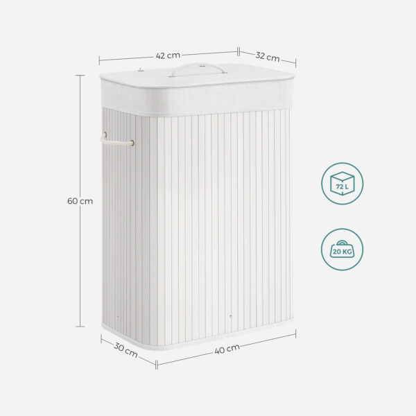Bambuko skalbinių krepšelis, baltas, yra puikus pasirinkimas jūsų namams. Šis krepšelis ne tik funkcionalus, bet ir stilingas, todėl puikiai tiks bet kokiame interjere.