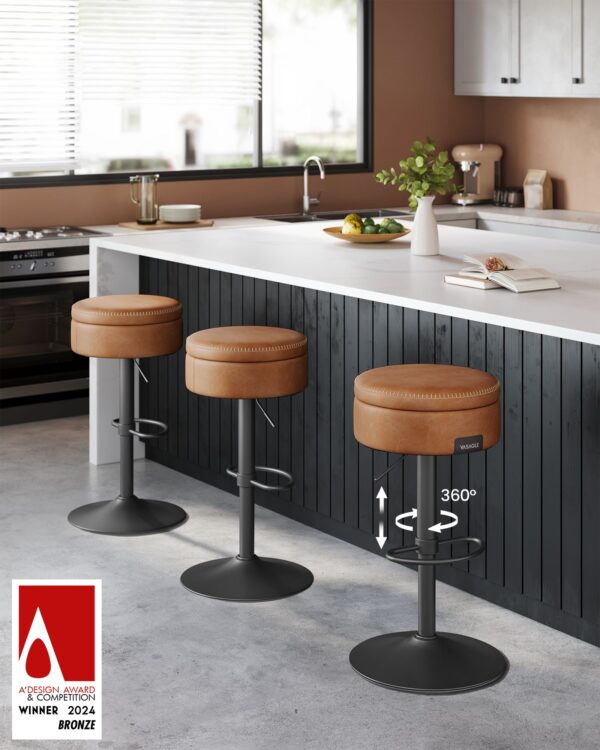 Ši baro kėdė yra ne tik funkcionali, bet ir estetiškai patraukli. Jos karamelinės rudos spalvos sėdynė puikiai dera su juodais plieno rėmais, suteikdama jūsų interjerui modernumo ir rafinuotumo. Reguliuojamas aukštis leidžia pritaikyti kėdę pagal jūsų poreikius, o tvirta konstrukcija užtikrina stabilumą ir saugumą.