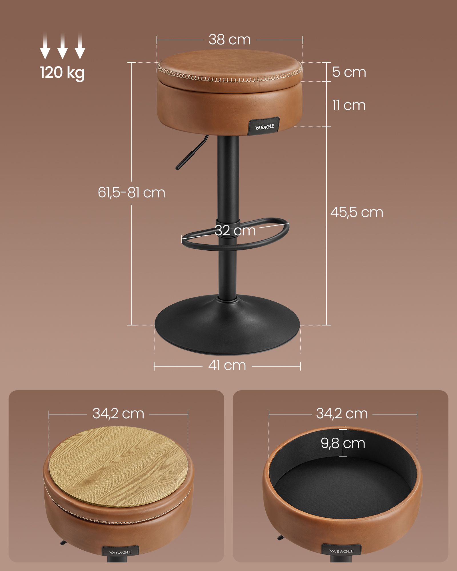 Baro kėdė 41x41x81cm, rudos/juodos spalvos