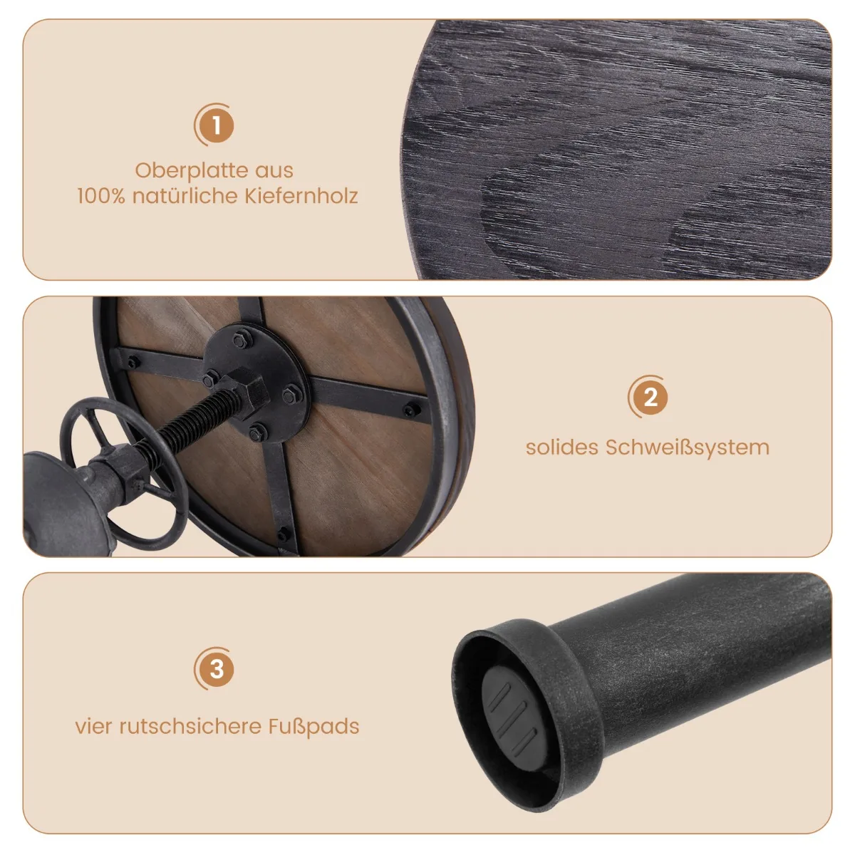 - Bendri matmenys: 44 × 44 × 59,5–75 cm (Ilgis × Plotis × Aukštis)