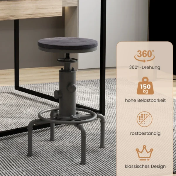 Baro kėdė 44x44x75 cm juodos spalvos – patvari ir patogi sėdėjimo vieta barams, restoranams ar kavinėms. Metalinė ir medinė konstrukcija užtikrina stabilumą, o reguliuojamas aukštis ir sukamoji sėdynė leidžia prisitaikyti prie individualių poreikių.