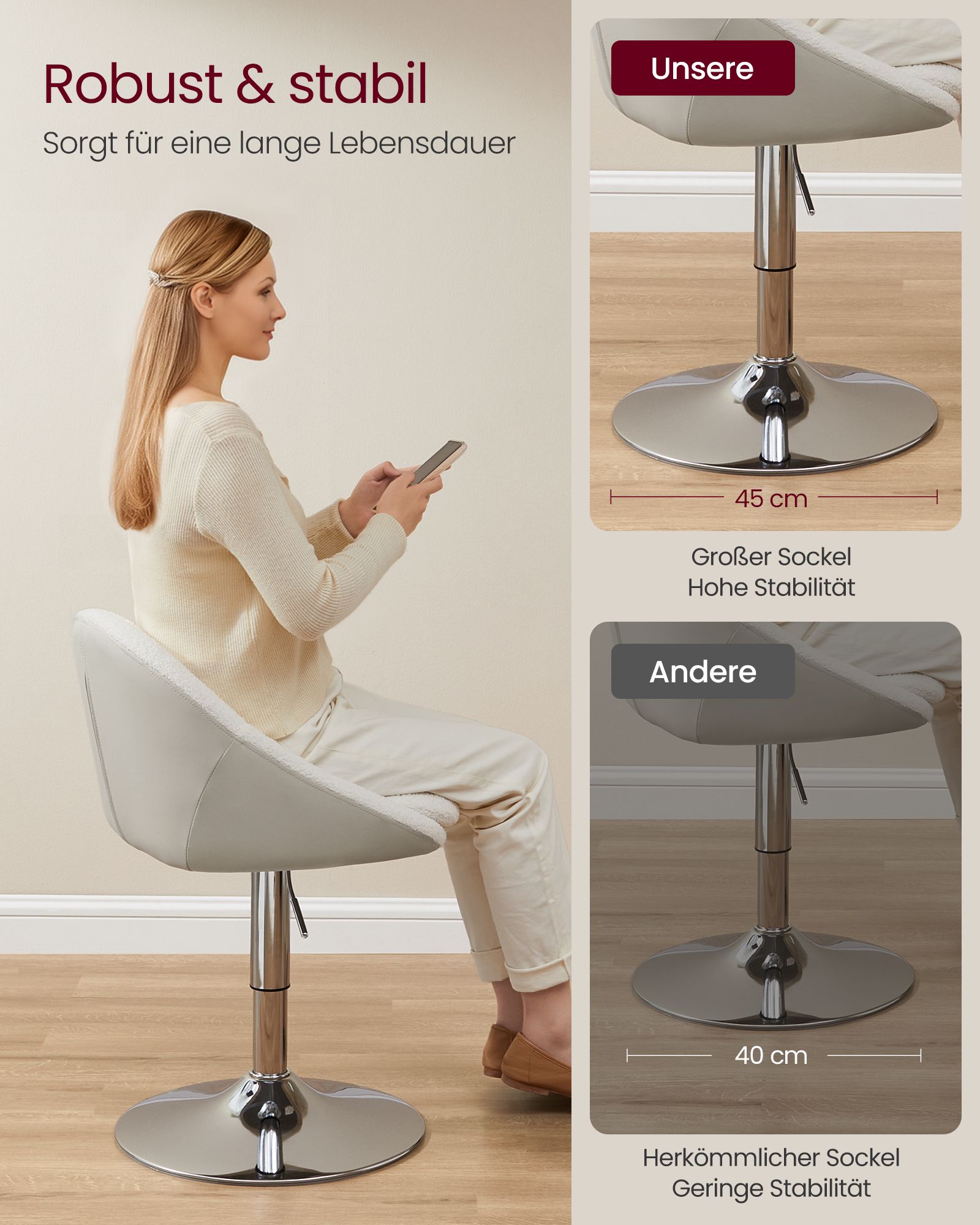 Ši elegantiška baro kėdė, kurios spalva yra kreminė balta, puikiai tiks jūsų interjerui. Ji pagaminta iš aukštos kokybės vilnos, PU odos ir metalo, užtikrinančių ilgaamžiškumą ir komfortą.