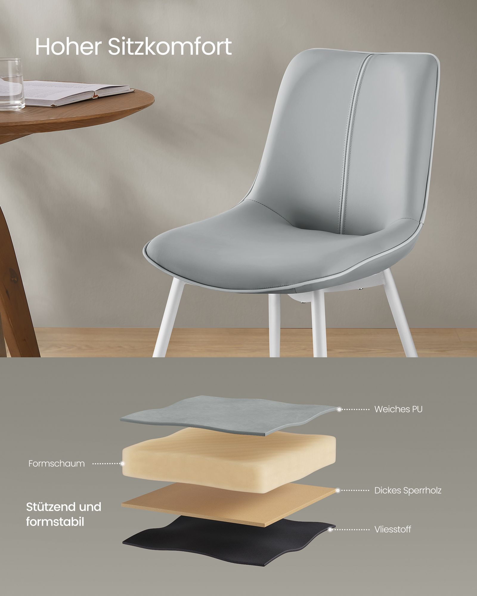 Pagaminta iš faneros, plieno, putplasčio ir PU, ši kėdė yra tvirta ir patikima. Bendri matmenys yra 56 x 50,3 x 81 cm (D x P x A), o sėdynės dydis – 41 x 48 cm (D x P). Sėdynės aukštis siekia 38,5 cm, o atlošo aukštis – 42,5 cm.