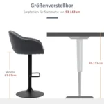 - ✔ Tinka baro stalui, kurio aukštis nuo 93 iki 113 cm