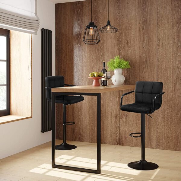 Elegancija iki maksimumo – paprastas profilis, patogus aksominis užvalkalas ir milteliniu būdu dengta metalinė konstrukcija ne tik suteikia spindesio šiam gaminiui, bet ir jūsų virtuvei. Čia galėsite papusryčiauti su mylimu žmogumi, padirbėti prie kompiuterio ar išpilstyti lankytojams taurę vyno.