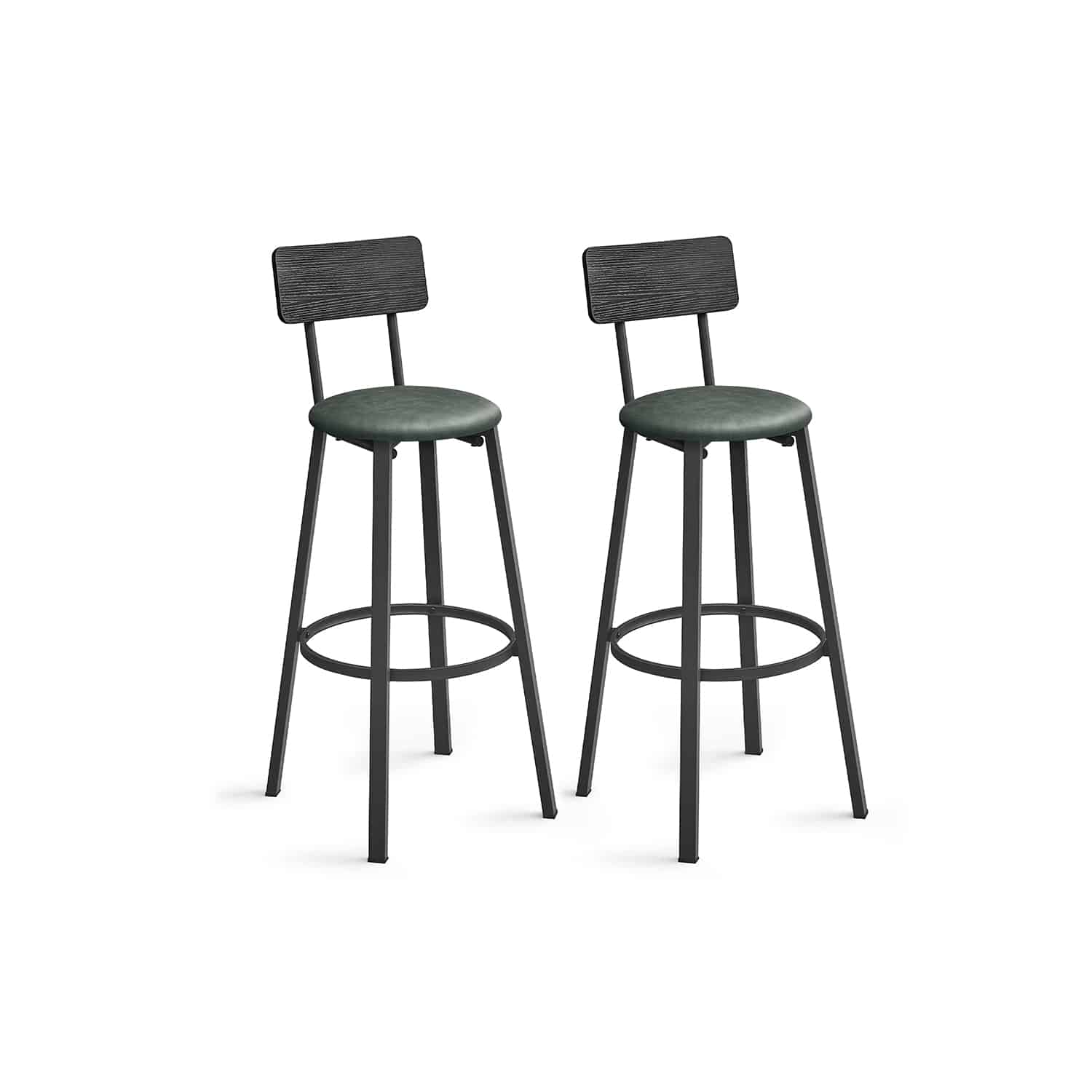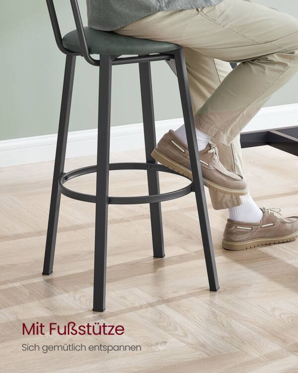 Baro kėdžių komplektas, 2 vnt., su atrama kojoms, žalios spalvos