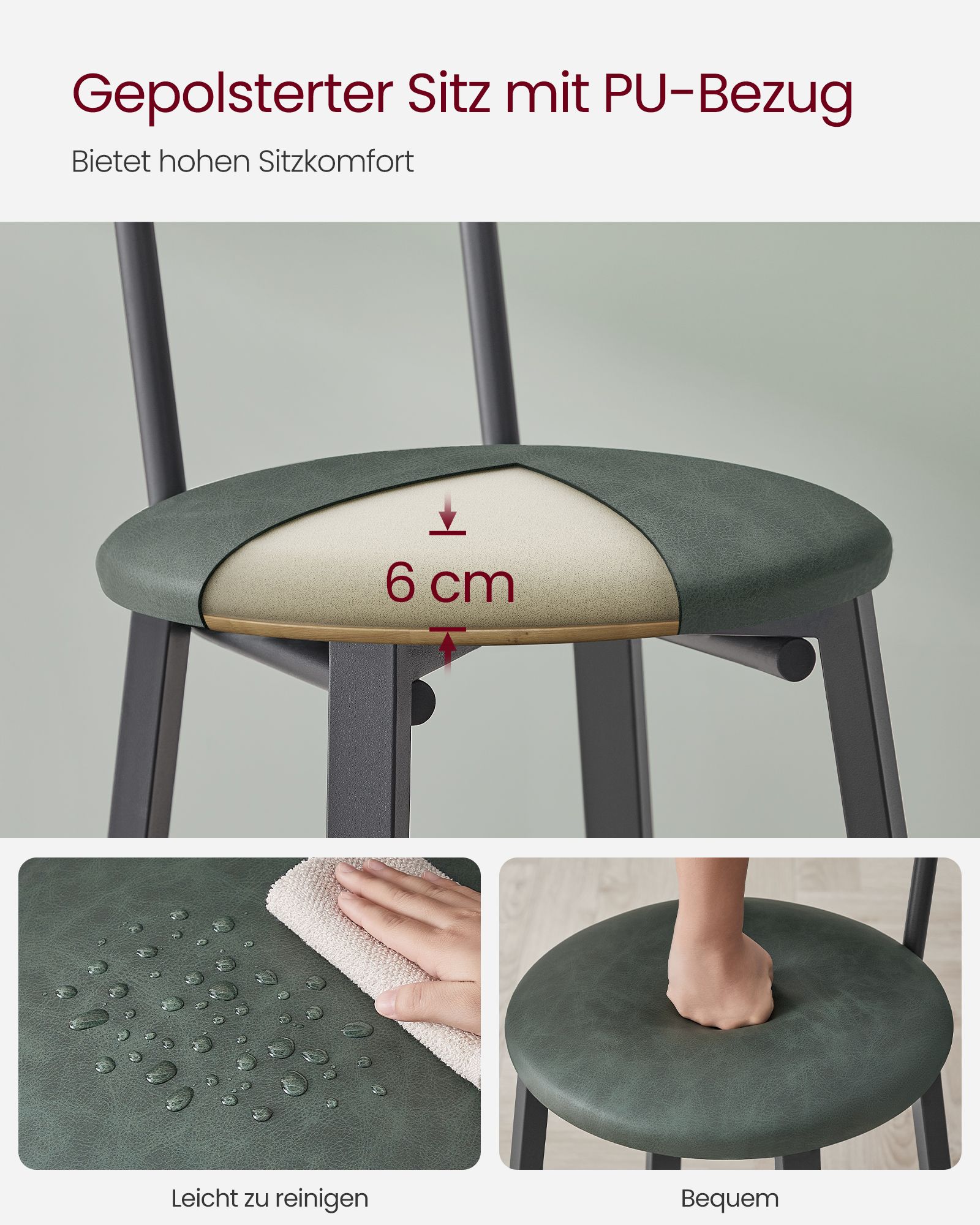 Šis baro kėdžių komplektas, kurį sudaro 2 vnt., yra puikus pasirinkimas jūsų virtuvei ar barui. Kėdės yra žalios spalvos, suteikiančios klasikinį juodo miško žalią atspalvį, kuris puikiai derės prie įvairių interjero stilių.
